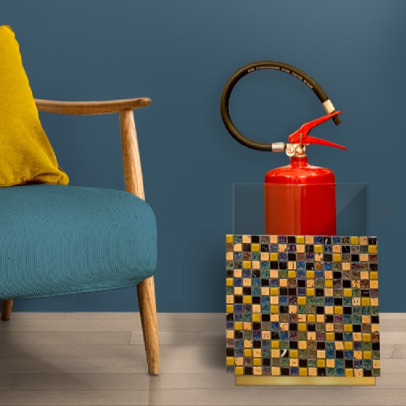 Firelook PT01MO Museum Luxury Mosaico Fire Extinguisher Holder is designed for prestigious environments, where its unmistakable design can inspire the designer during the definition of the environments, without renouncing that aesthetic that it seeks to enhance while safeguarding the details.
