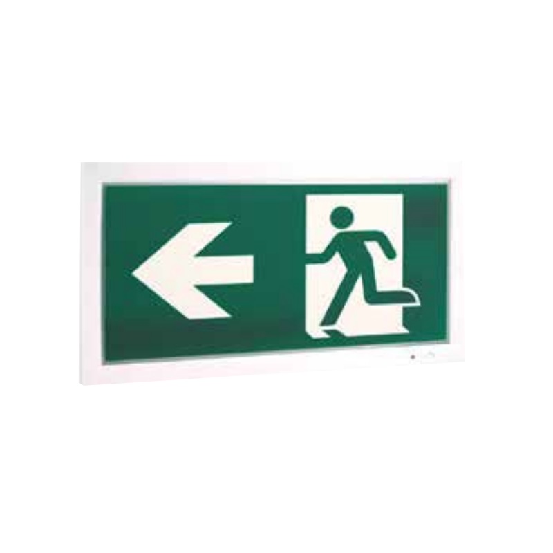 Fonux ESA-12 Self-Contained Emergency Exit Light with a Replaceable pictogram design including arrow right left, and down. Material of luminaire compliant with the glow wire test at the temperature of 850°C, RoHS compliance. LED self-contained luminaire with manual test and AUTO test-optional, Maintained and non-maintained operation changeable.