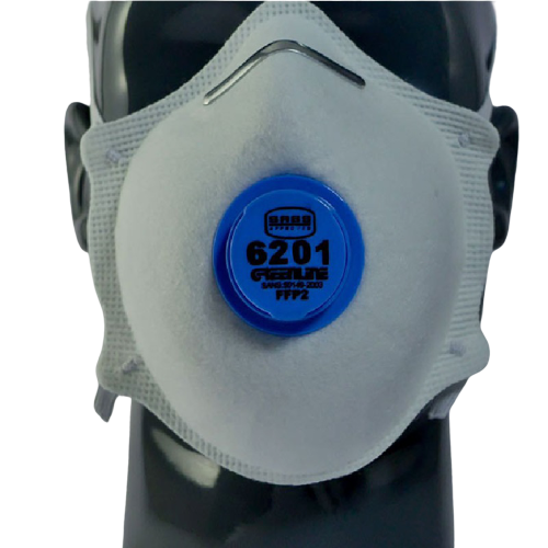GreenLine SABS 6201 Maintenance Free FFP2 Respirator Mask With Valve electrostatic charged filter media with superior lower breathing resistance Effectively reducing heat and CO2 build-up resulting in higher worker productivity and comfort. Respirators can provide lower-level protection against solid and liquid aerosols and smoke