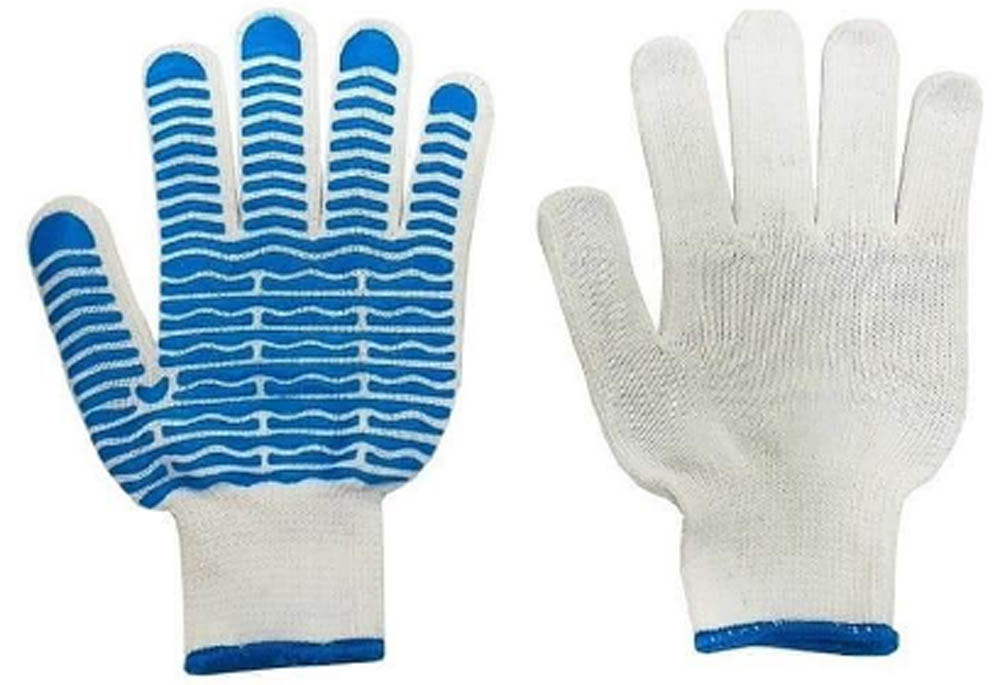 Cotton Knitted Gloves With Single Sided BLUE PVC Lines. Flexible And Comfortable, Durable With Excellent Breathability, Anti-Slip And Abrasion Resistance. For Wide Range Of Applications.