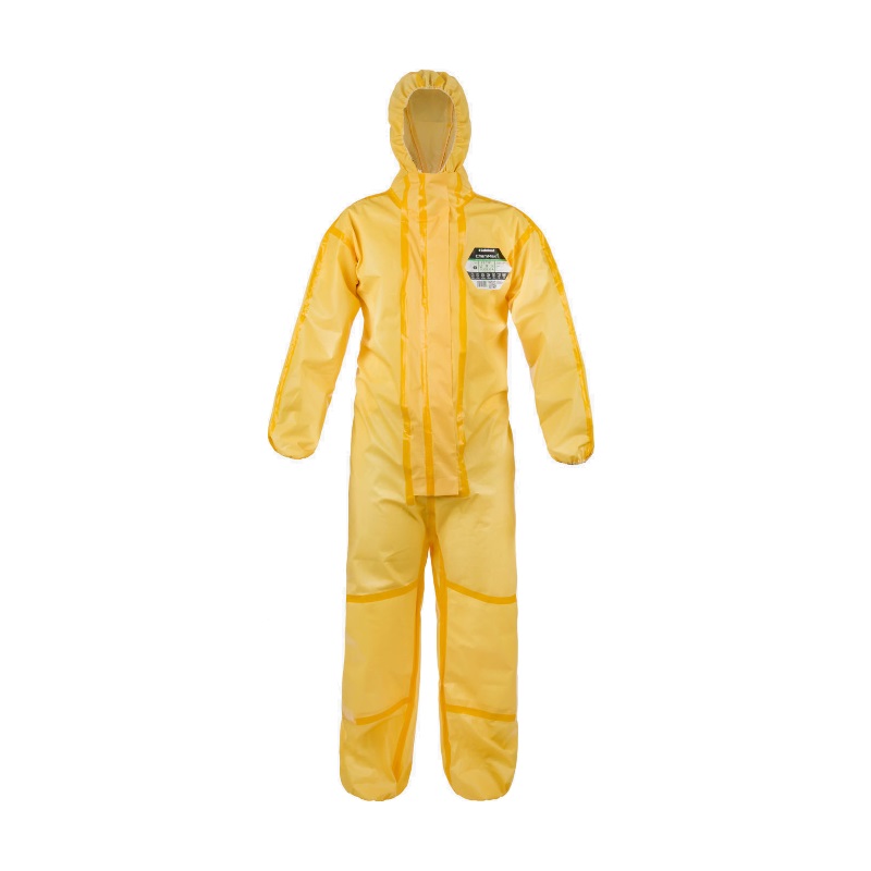 Lakeland ChemMax Coverall With Double Zip & Storm Flap and Elasticated Hood, Cuffs, Waist, and Ankles. Lightweight coverall for Type 3 & 4 protection against a wide range of chemicals – 78gsm. Three-piece hood, inset sleeves, and diamond crotch gusset result in the best fitting garment on the market. Infectious Agent Barrier – passes at highest classes in all four EN 14126 bio-hazard tests (version used extensively by UK Government health workers in 2015 West African Ebola Crisis).
