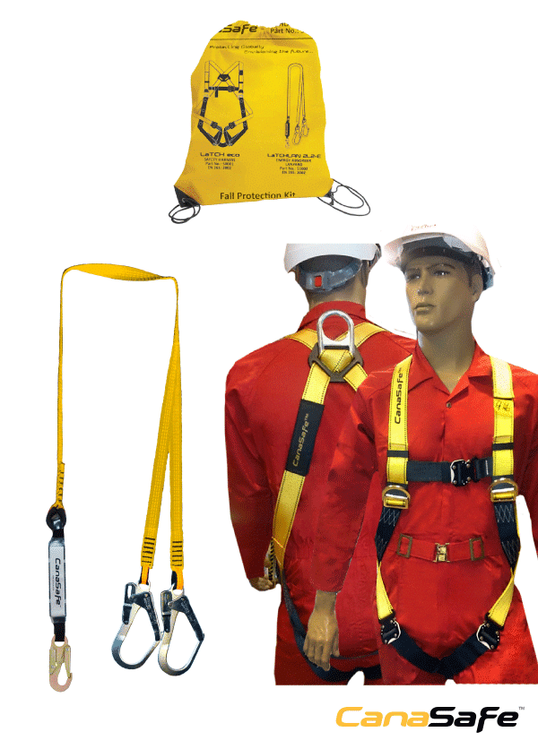 Canasafe Latch Eco Safety Harness 50001 with Latchlan 2L2-E – 51002 Double Lanyard, lightweight