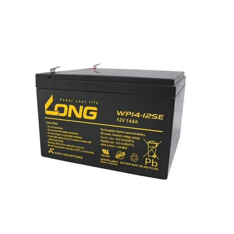Long WP14-12SE, 14Ah, 12V Rechargeable Sealed Lead Acid Battery provides high performance and long service life. Compliant with the IATA/A67 and IMDG/238 requirements for transportation, Safe and effective explosion-proof and ventilation design. Non-spill able and maintenance-free, Available for side, vertical, or upright installation.
