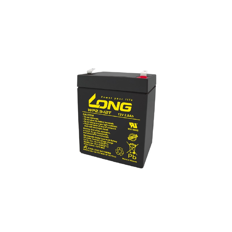 Long WP2.9-12T, 2.9Ah, 12V Valve Regulated Lead Acid Battery provides high performance and long service life. Compliant with the IATA/A67 and IMDG/238 requirements for transportation, Safe and effective explosion-proof, and ventilation design. Non-spill able and maintenance-free, Available for side, vertical, or upright installation.