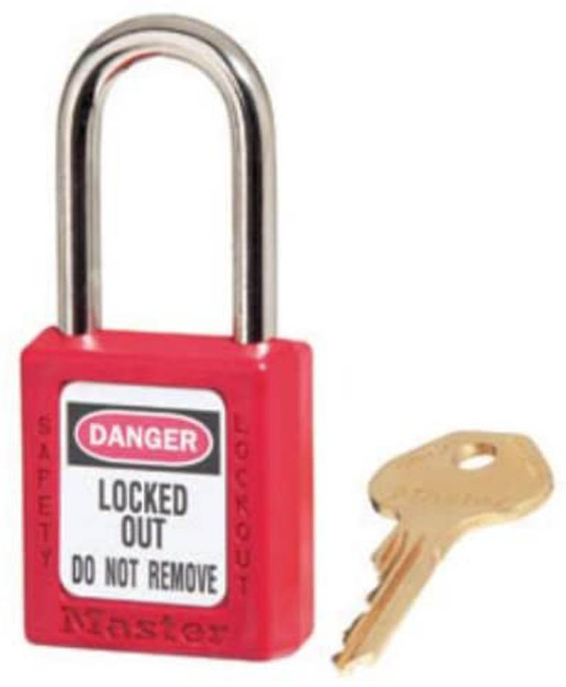 Loq-it PD-LQRDKDS38 Safety Lockout Padlock Red Chrome plated steel regular shackle. Economy lightweight padlock, durable non-conductive spark proof body made of nylon pa6, shock, uv and chemical resistant, withstands deformation and high ambient temperatures from -20 deg. C + 177 deg. C.