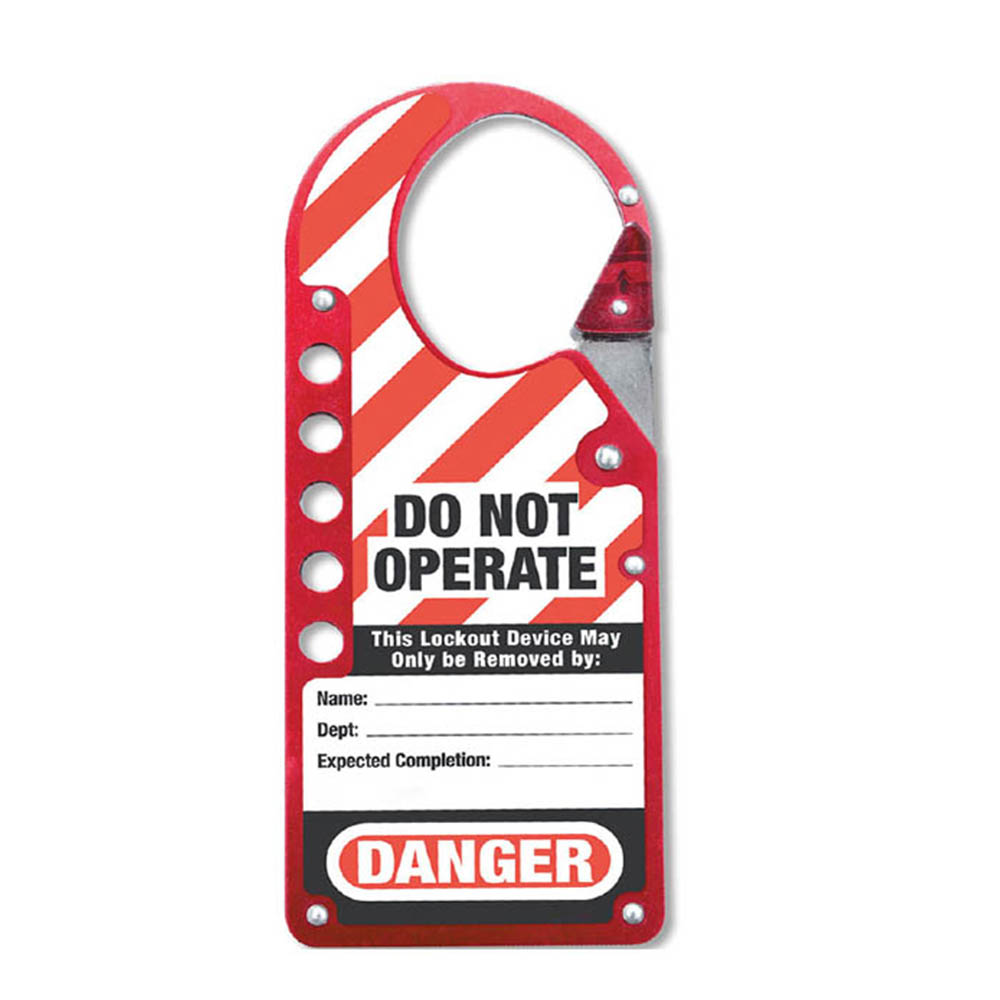 Loto-Lok HSP-MST-724R Accommodates 5 padlocks. Dimensions: 1-3/4in x 2-1/8in (44.5mm x 54mm) Jaw Clearance.