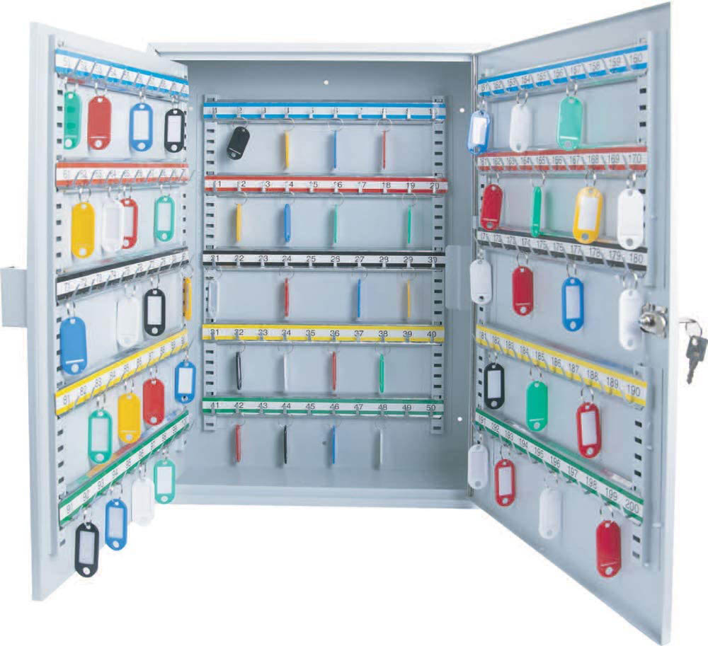 Made from SPCC cold rolled steel – Heavy-gauge Steel Construction Cabinet.Multi-coloured Key fobs 50 pcs. Included and wall fixing accessories with each cabinet.
