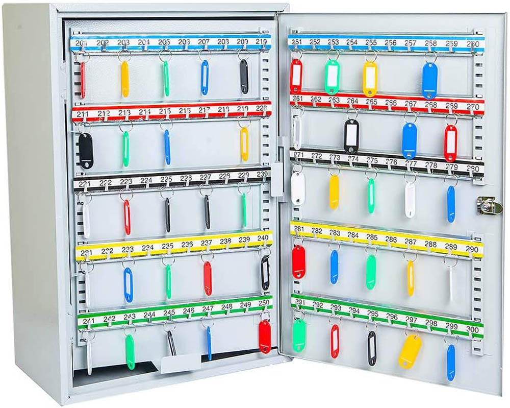 Made from SPCC cold rolled steel – Heavy-gauge Steel Construction Cabinet.Multi-coloured Key fobs 50 pcs. Included and wall fixing accessories with each cabinet.