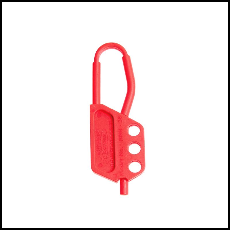 Safety lockout hasp has an exceptional electrical insulating characteristics and are made of red nylon material. It allows up to 6 multiple padlocks to secure a single lockout device.