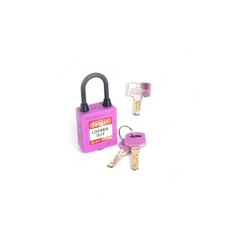 Body made of high weather and temperature resistant. Shackle made of Nylon extruded over Stainless Steel (SS304) Dual Purpose (Electrical and Mechanical use), Non-Conductive (DUO 2in1), Rust, Shock and Weatherproof. Key system is molded on padlock body and laser engraved on key. Visible key system allows user to initiate immediate action for lost or misplaced keys. Key number permanently laser engraved on padlock body and key permits quick traceability of Key to Padlock. Color coded key jackets reduces downtime identifying keys to different color padlocks. Note: Master Key quoted separately. Items Included: 1x Lock, 2x Keys.