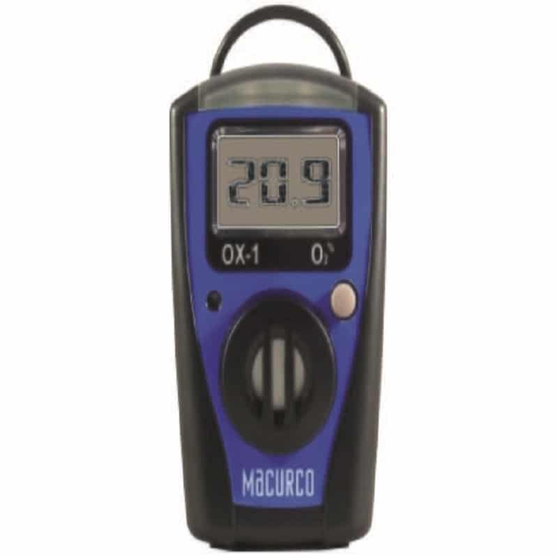 Macurco OX-1 Oxygen Single Gas Monitor is a battery powered unit utilizing a permanently mounted, non-rechargeable 3.6-volt Lithium battery. It is designed to be intrinsically safe. The Macurco Single-Gas Monitor is UL Classified intrinsically safe for Class I, Div. I, Groups A, B, C, & D Hazardous Locations. Calibrating (O2) prior to use in the same environmental conditions as the instrument will be used will increase the accuracy of the instruments gas concentration reading.