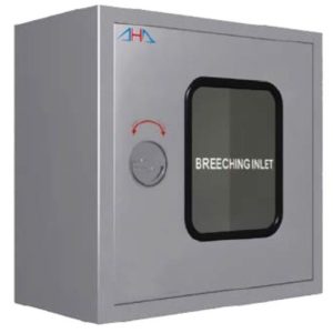 Recessed Type 4 Way Breeching Inlet Cabinet Single Door with Wired Glass Brush Finish