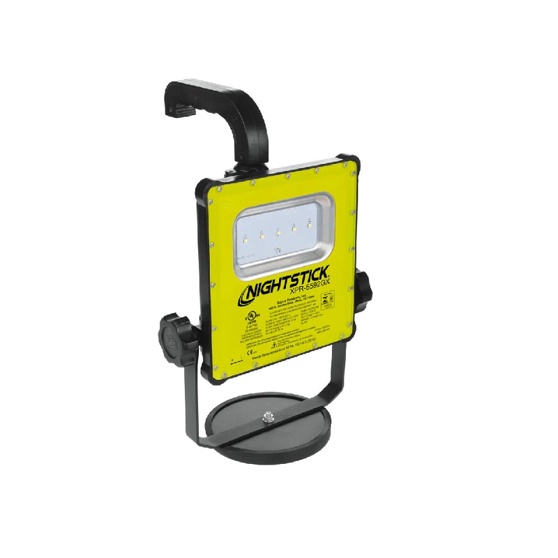 Nightstick XPR-5592GX Intrinsically Safe Rechargeable LED Scene Area Light is ideal for use when portability is important. cULus, ATEX, INMETRO, and IECEx-certified Intrinsically Safe for use in hazardous environments, the array of 5 floodlight LEDs perfectly emit an impressive 1,200 lumens on high for 6 hours, or 650 lumens on low for 12 hours when activated using the robust three-position toggle switch. The housing is constructed from lightweight glass-filled nylon polymer, keeping it cool to the touch while being chemical, heat, and impact resistant.