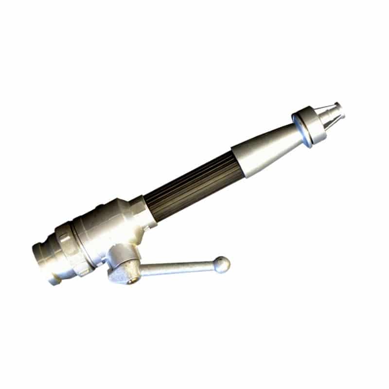 OMEX 2.5 Inch Fire Hose Brass Nozzle threaded smooth fire hose nozzle with hand-held branch pipe is made by a combination of Aluminium and plastics. The water flow control is by means of SHUT, JET and SPRAY. The branch pipe has a male instantaneous coupling inlet.