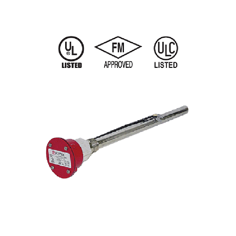 Potter TTS is a water tank temperature supervisory switch preset to give a low temperature signal at 40°F/4,5°C and a high temperature signal at 140°F/60°C (±5°F/3°C). It is UL Listed and FM Approved. A bi-metal thermostat is used for low temperature sensing and a bi-metal thermostat for high temperature sensing. A diode is used in this unit as a testing aid. When the polarity of DC current is reversed at the feed wires to a TTS, the diode in the circuit prevents the fl ow of current, proving the absence of a short circuit fault in the wiring or the device itself.