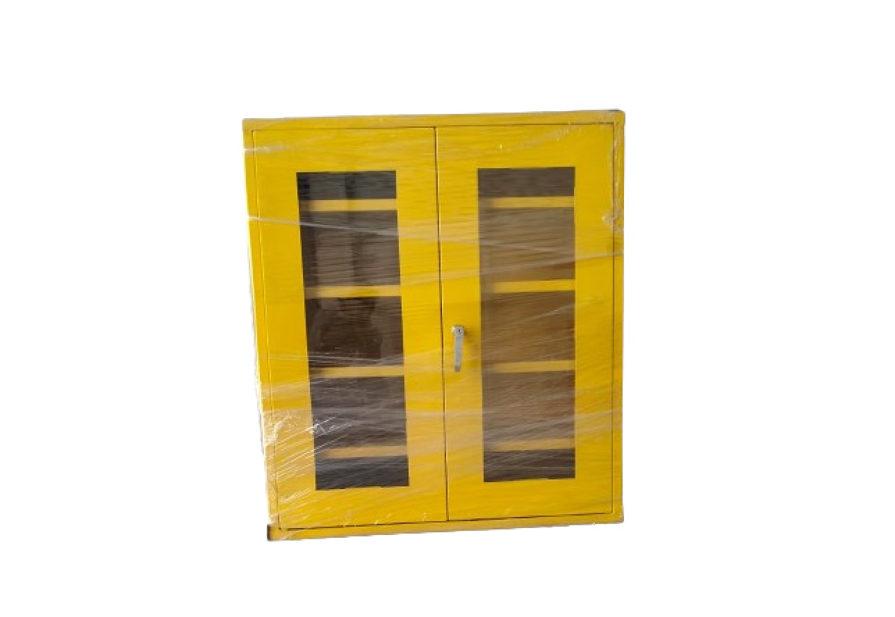 PPE Storage Cabinet, 2 Shelf, 95 x 45 x105 Cm (H), Yellow Thickness, Powder Coated (non-stickers and non-certificate) designed to safeguard your Personal Protective Equipment (PPE) with utmost efficiency and convenience. This 2-shelf cabinet, standing tall at 95 x 45 x 105 cm (H), is the epitome of durability and functionality, ensuring your safety gear remains organized and readily accessible when needed.