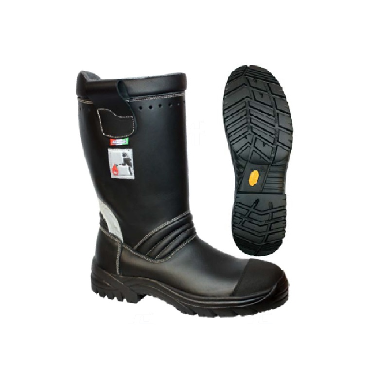 Nitrile rubber, with breathable liner, removable insole, antistatic, steel toecap, heat resistant up to 300°C. Anti perforation midsole conforms with EN 12568 EN 20344. Fireman Boots is tested and certified to EN 15090:2012, F2A, HI3, SRC, CI, AN.