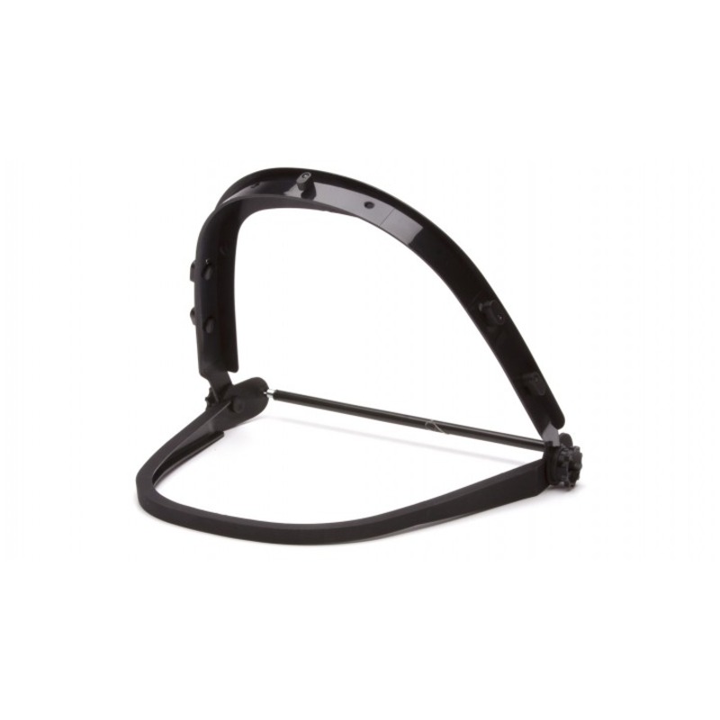 Constructed from durable nylon with plastic coated tension spring. Fits most cap style hard hats and accommodates a variety of face shields.