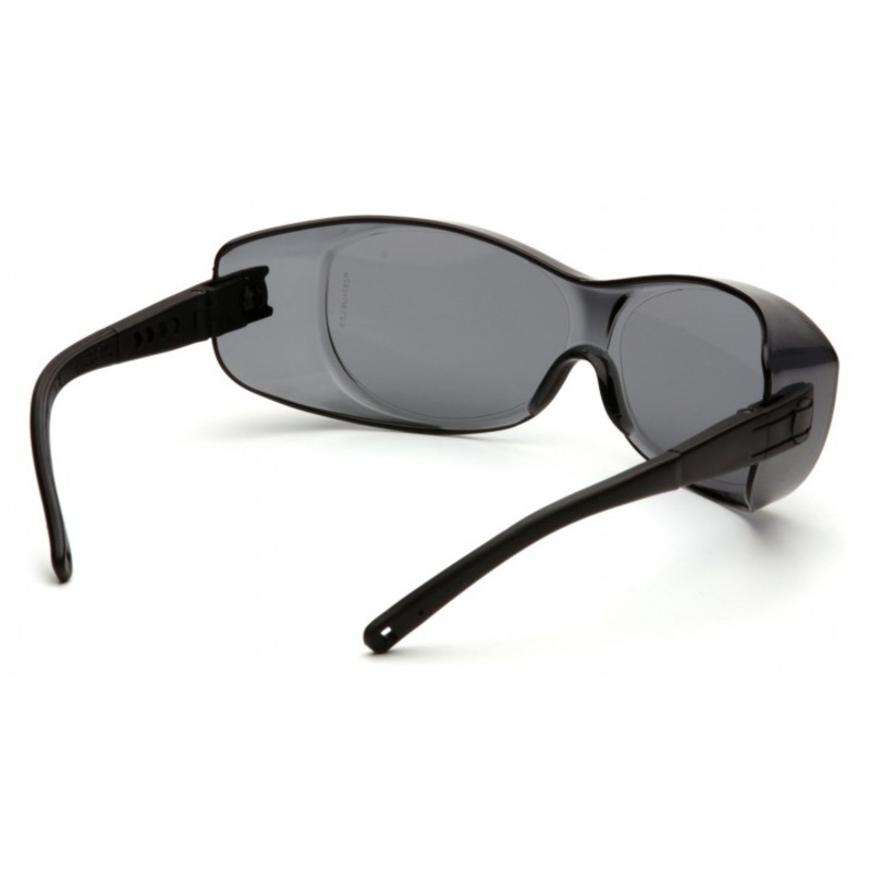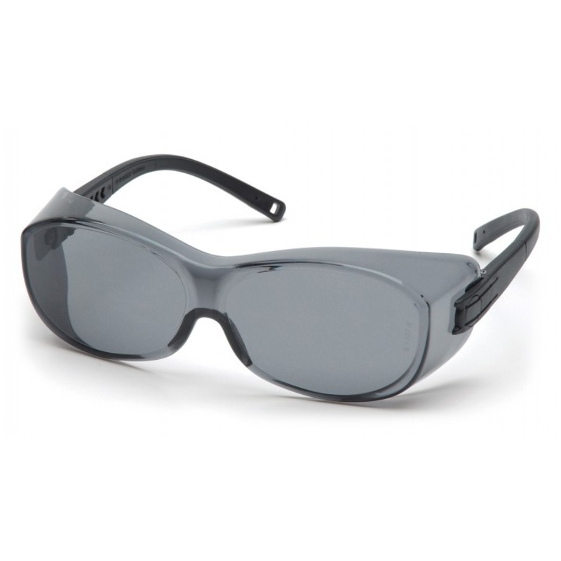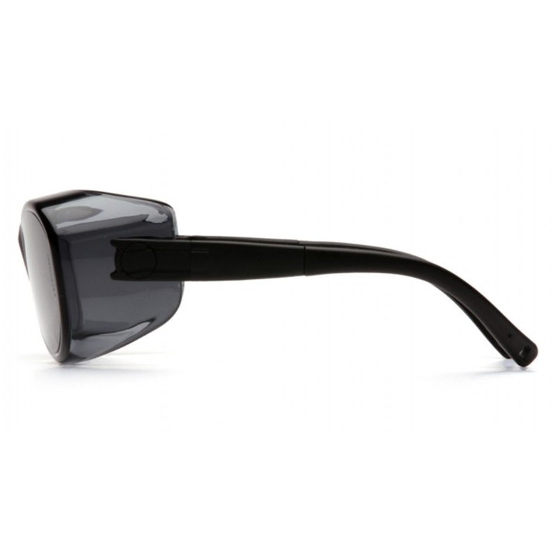Designed to better fit today’s prescription eye wear. Lightweight nylon temples adjust for length and pitch. Single lens encapsulates the eye for superb protection. Scratch resistant polycarbonate lens provides 99% UVA/B/C protection.