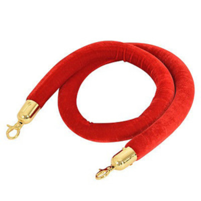 Use these crowd control barriers to keep your guests organized and safe; perfect for red carpet-themed events. The red velvet rope features polished gold metal hooks that allow you to connect to a stanchion or hang the rope up when not in use.