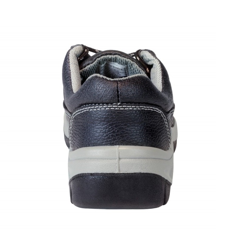 Basic model safety shoe low ankle cut rocker, for the construction and fabrication industries black color. standard lightweight, suited for intense heavy duty work.