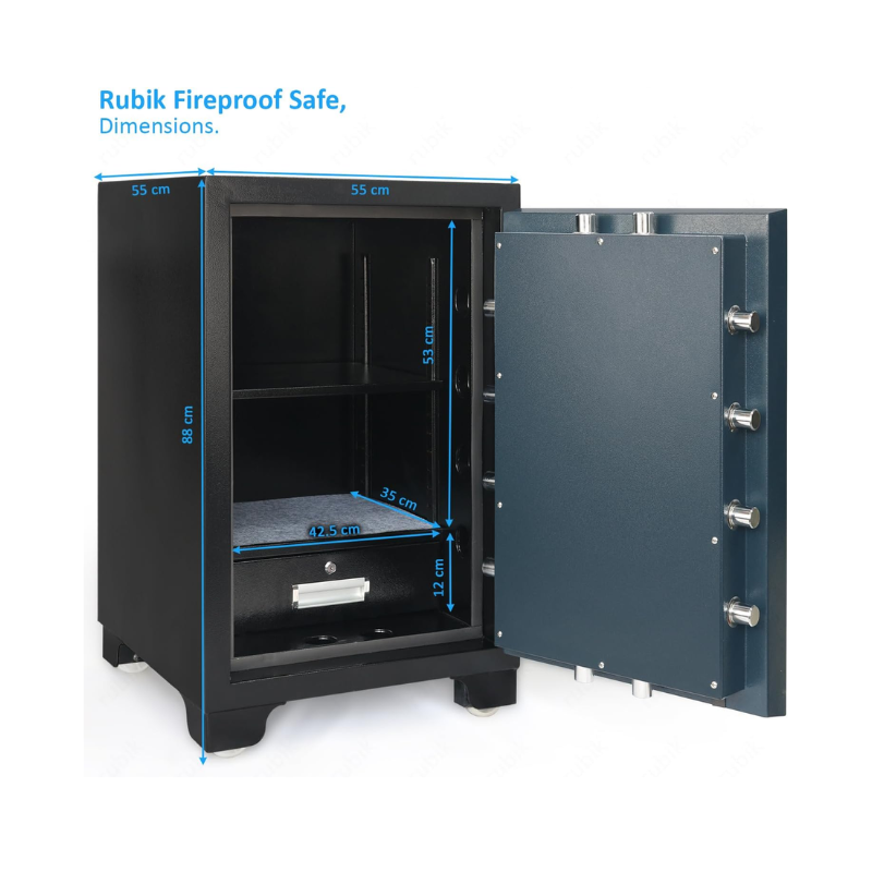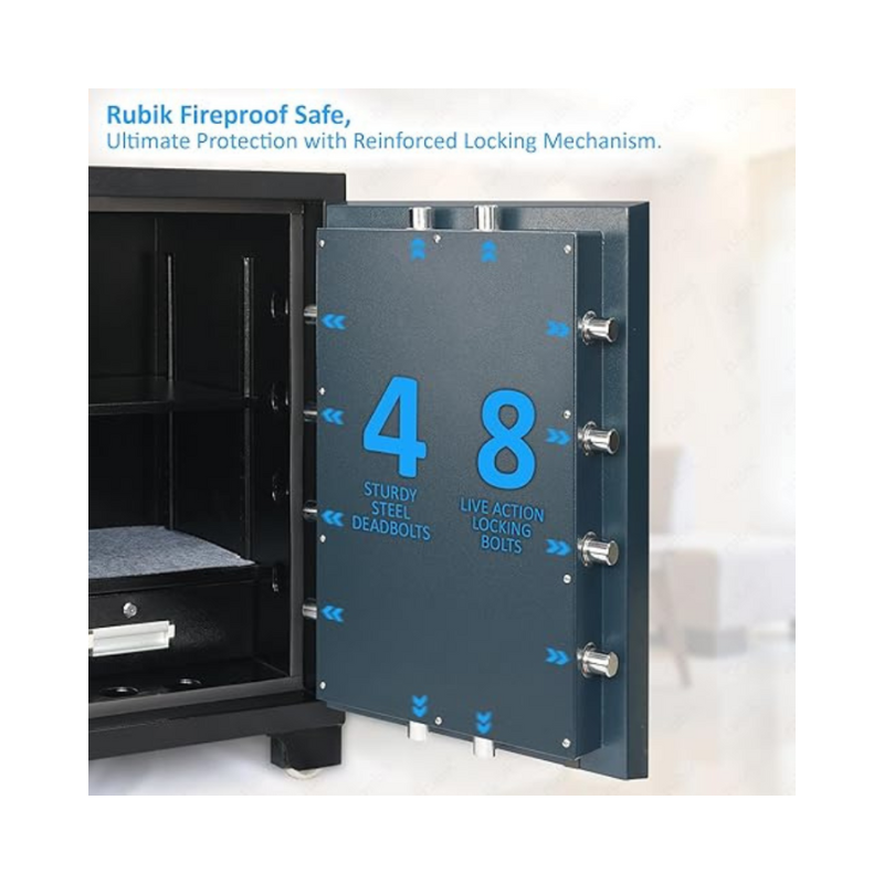 Rubik Fireproof Safe Box RB-880LB, 180Kg, is built to deliver ultimate protection for valuables against theft and fire. Constructed with heavy-duty steel and weighing 180Kg, it offers unmatched durability and resilience.
