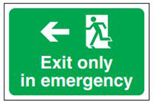 Safe Safety Sign – Exit Only In Emergency Left