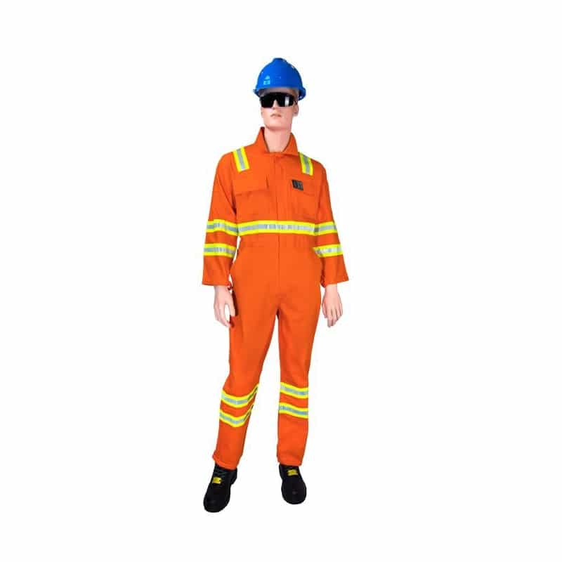 Safeguard Fire Retardant Coverall With 2 Inches Dual-color Hi-viz Reflective Tape, pockets with 1cm slant stitch. The coveralls are available in 4 sizes are Small, Medium, Large & Xtra Large, these are also available in 5 colors they are Red, Khaki, Royal Blue, Orange, Navy Blue.