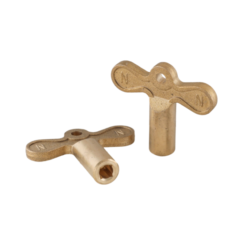 Heavy-duty brass key designed for operating lock shield gate valves in plumbing and heating systems.