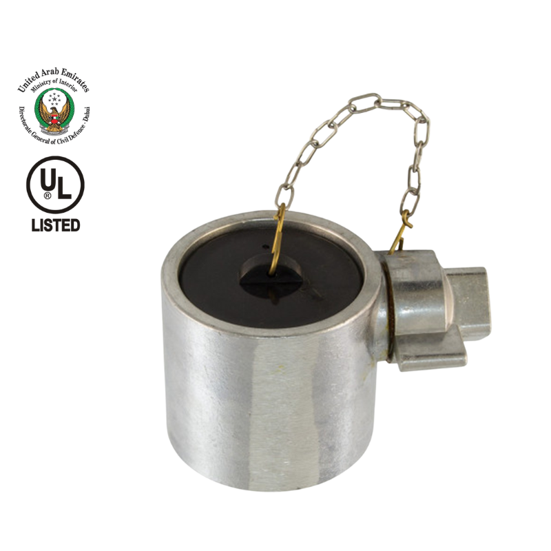 65mm Aluminum Female Instantaneous Coupling with Female NH Thread and Black Plastic Cap for hydrant applications.
