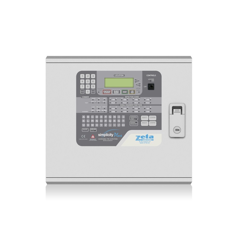 The Simplicity Plus 252 has user-definable zones, options for zonal or common alarm operation, options for I/O operation, alarm verification, and user-selectable languages.