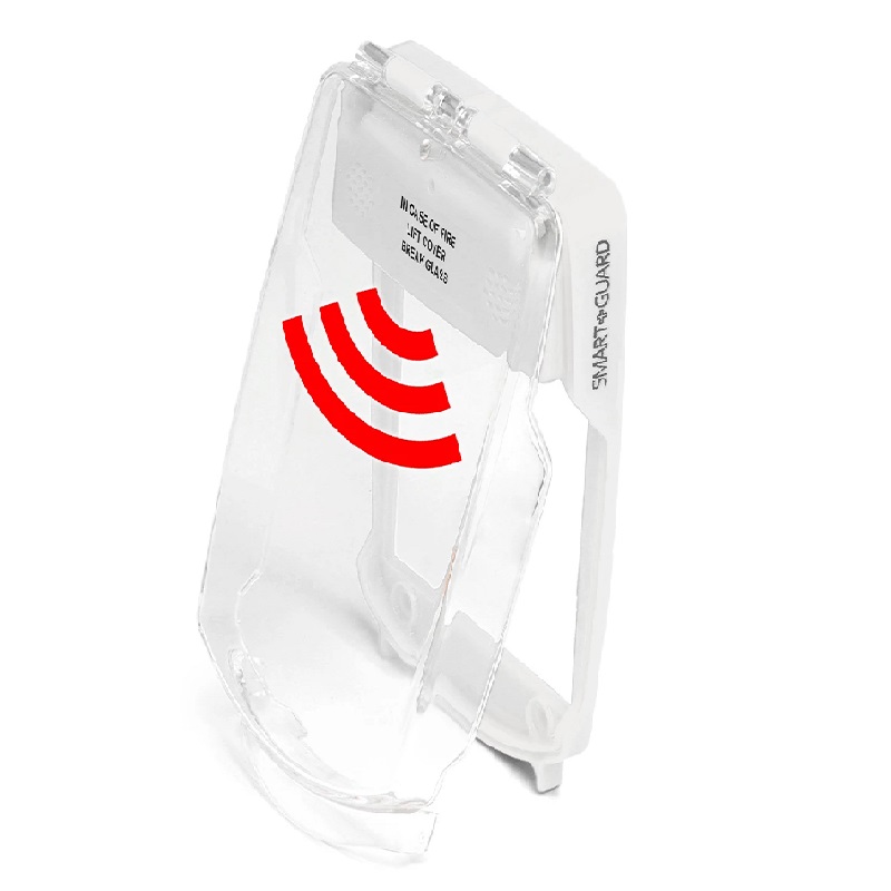 Smart+Guard SG-FS-W is a tough polycarbonate hinged protective cover that can easily be installed over a range of call points, emergency switches, and other devices to provide protection from vandalism, accidental damage or misuse. The Smart+Guard can also be fitted with an integral battery powered alarm, that when lifted emits an ear-piercing 90dB alarm, warning the user that the device is for emergency use only and should not be tampered with. In its red form, it is commonly installed over fire alarm break glass call points to protect the break glass from deliberate misuse or accidental damage and this subsequently reduces the incidents of false fire alarms.
