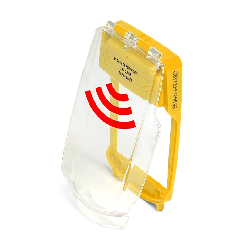 Smart+Guard SG-FS-Y is a tough polycarbonate hinged protective cover that can easily be installed over a range of call points, emergency switches, and other devices to provide protection from vandalism, accidental damage or misuse. The Smart+Guard can also be fitted with an integral battery powered alarm, that when lifted emits an ear-piercing 90dB alarm, warning the user that the device is for emergency use only and should not be tampered with. In its red form, it is commonly installed over fire alarm break glass call points to protect the break glass from deliberate misuse or accidental damage and this subsequently reduces the incidents of false fire alarms.