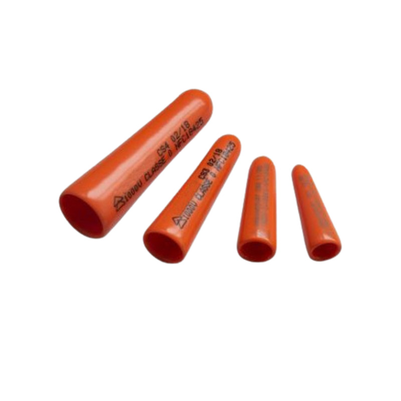 Caps for insulating cables during low voltage operations. Operating voltage: 1000 V for alternating current and 1500 V for direct current. Complies with NFC 18-425 (class 0).