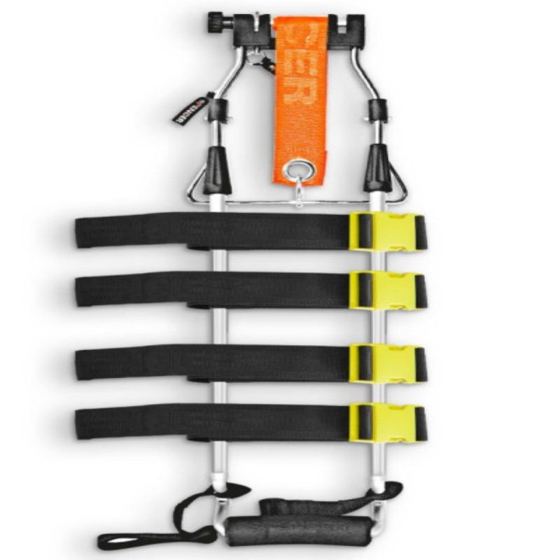 Davis traction systems are devices that limit tissue damage caused by possible bone rubbing by spacing the two halves of a fracture. Sturdy and lightweight structure. 4 padded supports offer greater comfort and a better weight distribution. Elastic immobilization bands. Padded and adjustable ankle band. Soft ischial padding increase leg stability and patient comfort. Transport bag with pocket and strap closure allows easy storage of the device and accessories.