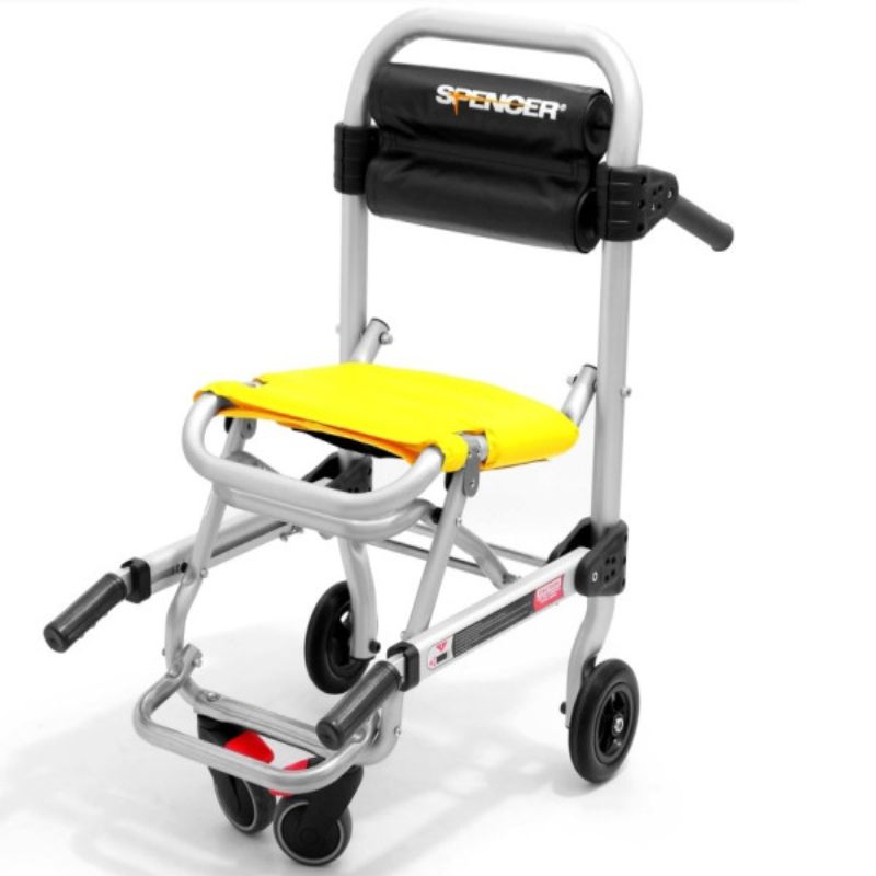 Spencer 4BELL CLASS is a transport chair for the evacuation and transport of patient from the rescue place to the ambulance or to another device intended for transport on the vehicle. Easy to clean PVC sheets. 2 rear foldable handles to save space and to facilitate the lifting in every situation. Telescopic front handles to facilitate the handling. The telescopic handles locking system can be unlocked by a simple directional pressure.