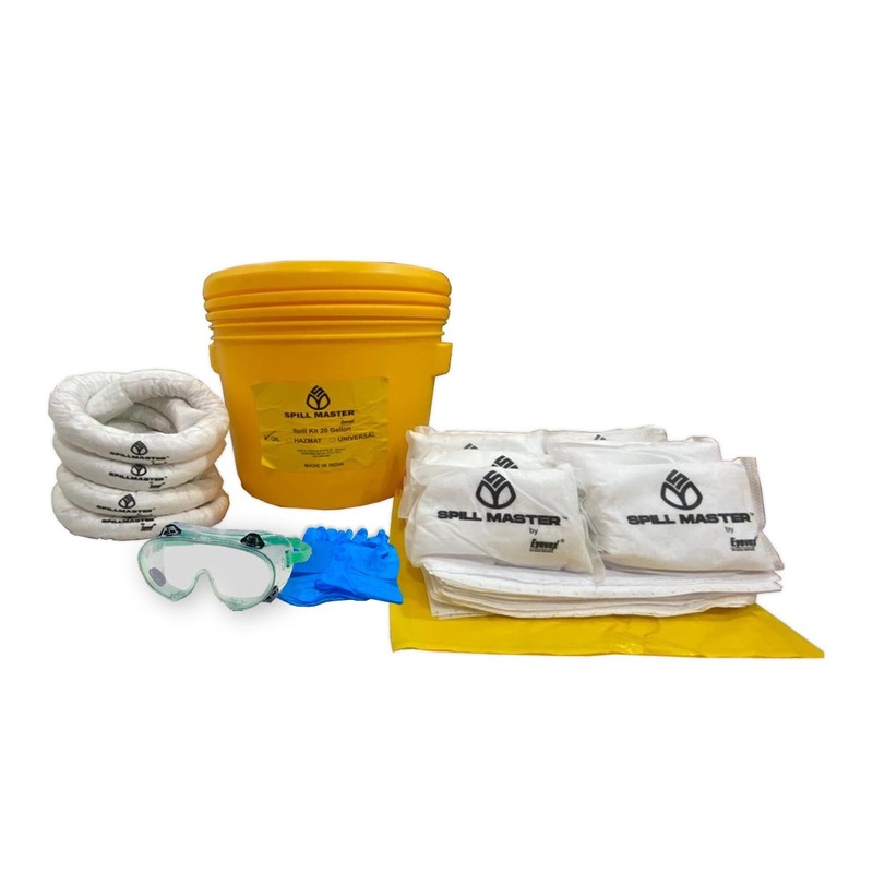 An oil spill kit in a yellow wheeled bin with a capacity of 20 gallons (or approximately 120 liters) is designed for larger spills and is typically used in industrial settings or areas where large volumes of oil or other hazardous liquids are stored or transported. The kit is designed to contain and clean up spills of up to 120 liters and is often used in workshops, factories, and other industrial locations. Here are some components that may be included in an oil spill kit in a yellow wheeled bin: Absorbent materials – Like smaller kits, an oil spill kit in a yellow wheeled bin typically includes a variety of absorbent materials such as pads, socks, and pillows to soak up the spilled oil or other hazardous liquids. Protective gear – The kit may also include personal protective equipment such as gloves, goggles, and protective clothing to help ensure the safety of those handling the spill.