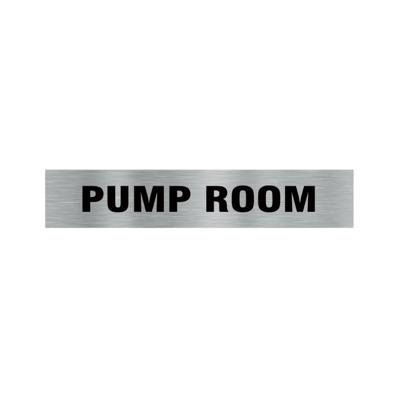 Durable stainless steel signage board measuring 30×10 cm, clearly indicating the Pump Room for safety and identification purposes.