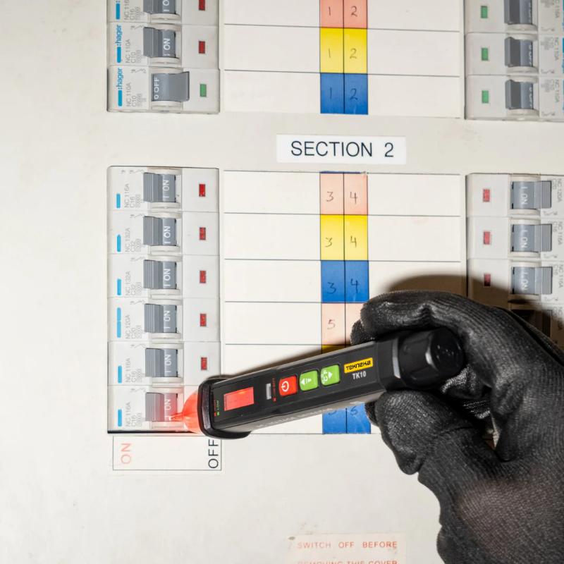 The TK10 by Tekneka is capable of detecting AC voltage in electrical components such as cords, wires, circuit breakers, switches, and power outlets as well as in security, entertainment, communication, environmental control, and irrigation systems. By displaying a sensitive level and sounding an alarm, the integrated non-contact voltage (NCV) detects the live voltage. The compact LED display can show the temperature of the surrounding area and deliver voltage alarms in multiple colors. An LED flashlight is included with the TK10 to enhance visibility in low-light areas.