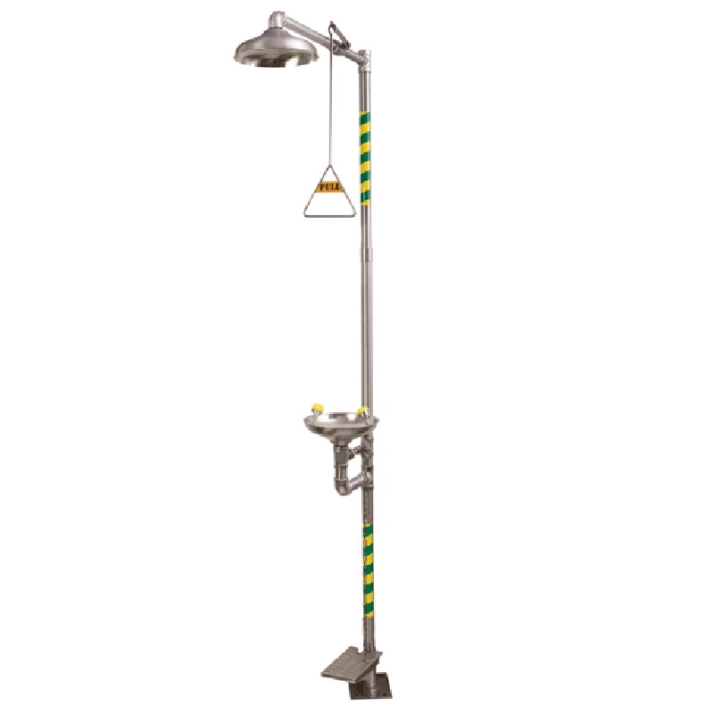 Unicare LSE 8 CSS Emergency Safety Eye/Face Wash And Shower operates by Foot Pedal & Shower by Pull Rod. SS drenches the shower head with a perforated spreader ensuring complete drenching of the victim in seconds. SS Slim twin cushion flow atomizers have an aerator filter and pop-off dust covers. SS Receptor Bowl is resistant to damage from alkalies, salt solutions, oils, and most acids. SS Foot Pedal operated Self closing SS Ball Valve with SS Ball and Spindle.