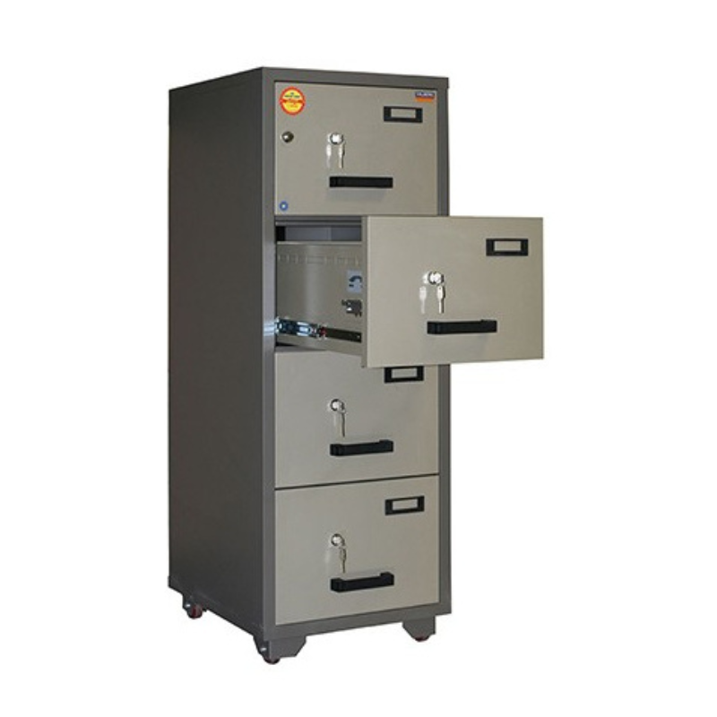 Valberg – 4-Drawer Fire Resistant Filing Cabinet with Two Key on Top Drawer and 1 KL for Other Drawers, 1500 x 545 x 653mm – FC 4K-KK