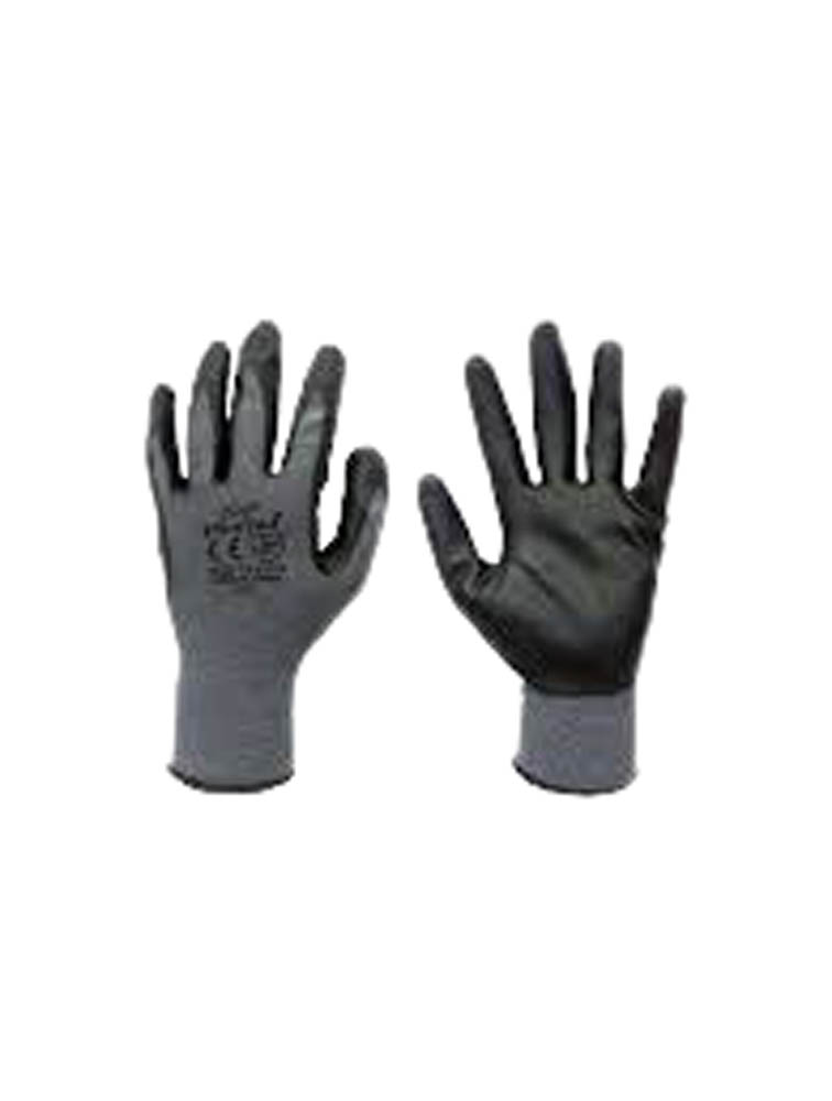 Nitrile Coated Gloves on Grey Knitted Shell are flexible and comfortable. Good Grip with Breathable Elastic Wristband, Handling, Assembling in Oily Environment.Handling in Wet and Greasy Environment.