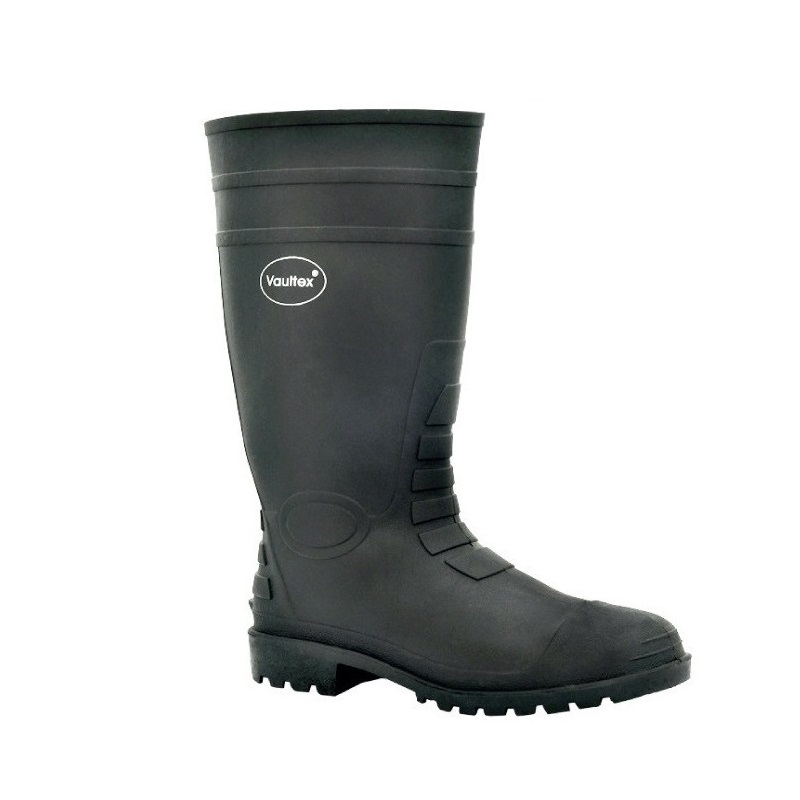 Vaultex RBT Gum Boot / Rain Boot With Steel Toe is Tough waterproof protection PVC gumboots that are built to last. comfortable and durable protection. 37.5cm height, black color with slip-resistant, acid-resistant, and oil-resistant outsole.