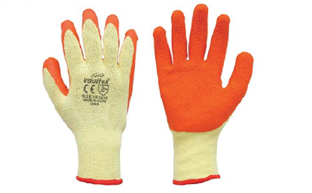 Gloves are Orange Color Half Latex Coated Crinkle Finish Gloves On yellow Knitted Shell.They are Flexible And Comfortable, Good Grip With Breathability, Anti-Slip And Penetration Resistance. Suitable For Mechanical And Low Temperature Environments.