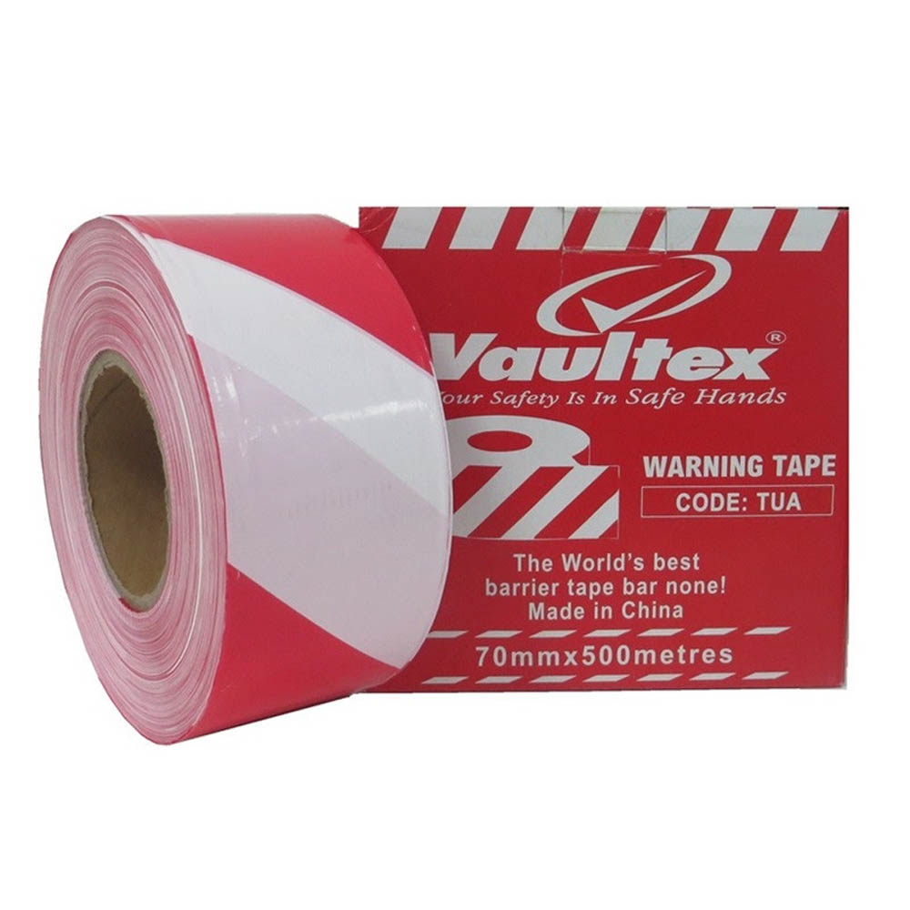 Vaultex TUA Warning Tape Red & White – 70mm X 500 Metres