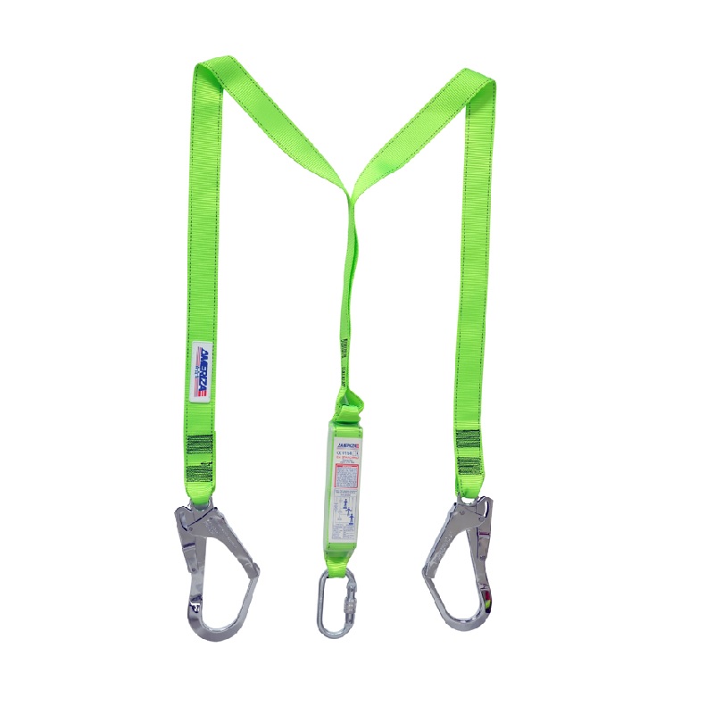 Vertex Web Y Webbing Lanyard With Energy Shock Absorber One Side Karabiner & One Side Scaffolding Hook, U-Type Lanyard. One-Side Easy 308 Karabiner & One Side Silver Plated Scaffoldings With Easy SH 60 Hook
