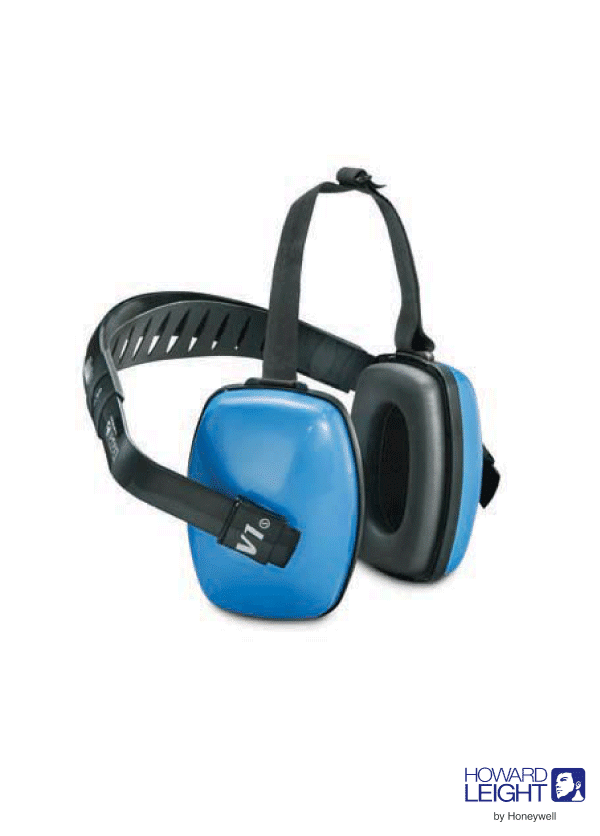 Howard Leight Viking V1 Light Blue Multi Position Noise Blocking Earmuffs with 25 dB NRR have non-deforming dielectric construction and patented airflow Control technology that ensures superior attenuation across all frequencies. Earmuffs can be worn over-the-head, behind-the-head or under-the-chin and is used when using other PPE like hard hats, visors, face shields, respirators and welding shields. They protect workers in electrical environments and resists use and abuse. Earmuffs have headband with a ventilated inner construction and minimizes pressure on the head while allowing for easy breathing in warm/humid climates. They feature snap-in ear cushions that make replacement fast and convenient and an elastic headband strap for better positioning.