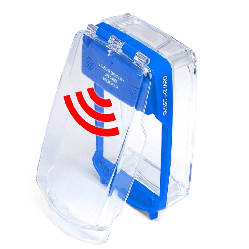 Smart+Guard SG-SS-B is a tough polycarbonate hinged protective cover that can easily be installed over a range of call points, emergency switches, and other devices to provide protection from vandalism, accidental damage or misuse. The Smart+Guard can also be fitted with an integral battery powered alarm, that when lifted emits an ear-piercing 90dB alarm, warning the user that the device is for emergency use only and should not be tampered with. In its red form, it is commonly installed over fire alarm break glass call points to protect the break glass from deliberate misuse or accidental damage and this subsequently reduces the incidents of false fire alarms.